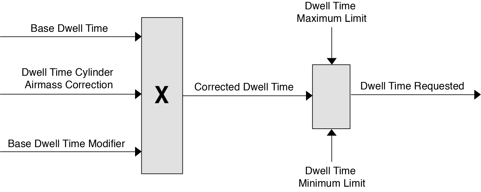 | 2. | The base dwell time is corrected as a function of cylinder airmass (Dwell Time Cylinder Airmass Correction). |