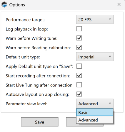 Allows users to view their parameters in a Basic layout setting or Advanced setting.
