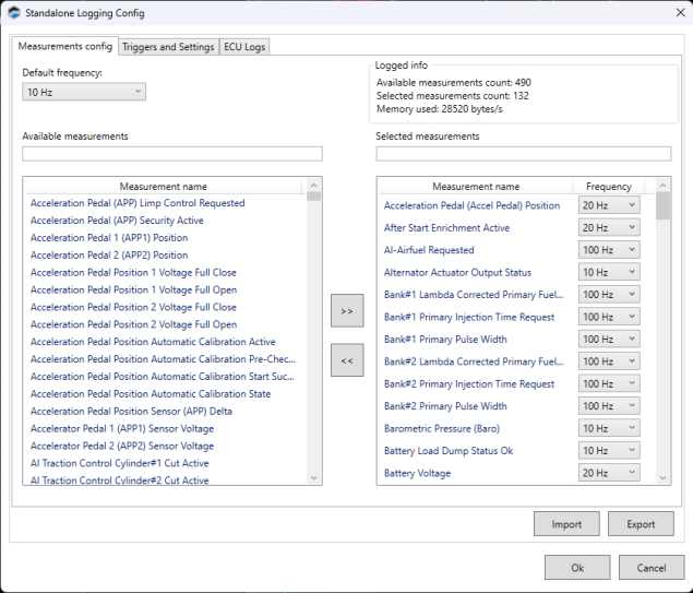 NOTE: The higher the frequency, the faster the ECU's available memory will be consumed by the recording. A good strategy is to choose a relatively low default frequency. Then, choose higher frequencies for individual measurements that require better resolution.
