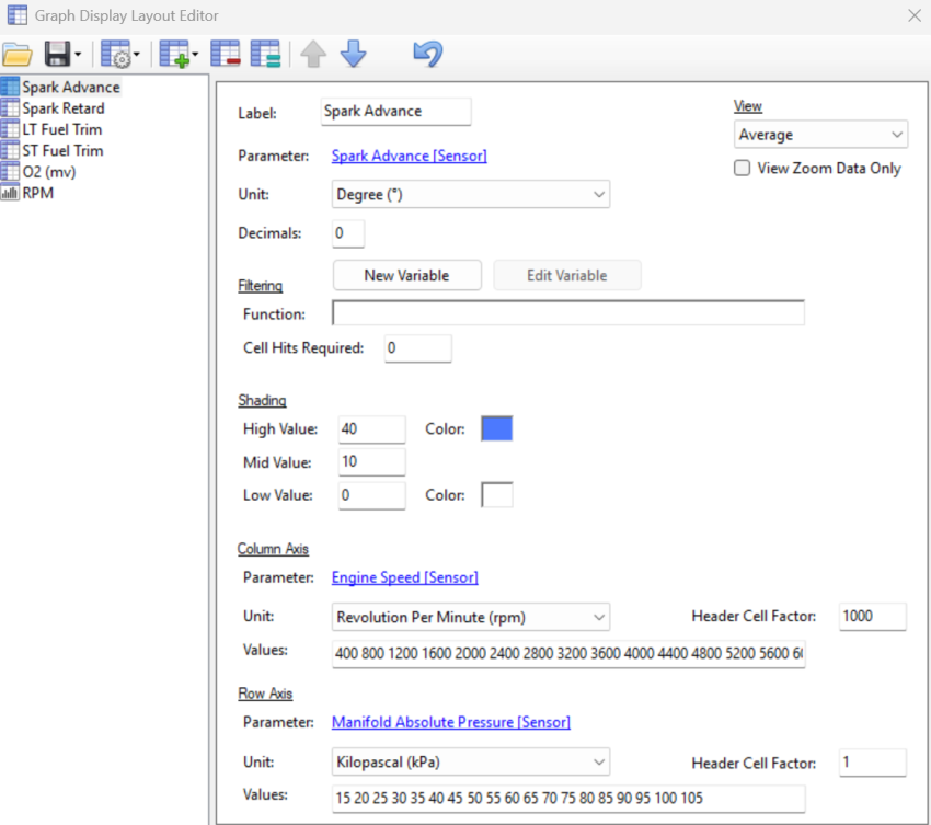 The layout editor is used to add, remove. and configure individual graphs. To open this window: